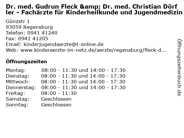 ᐅ offnungszeiten kinderarzt praxis gudrun fleck und alfred heihoff gunzstr 1 in regensburg