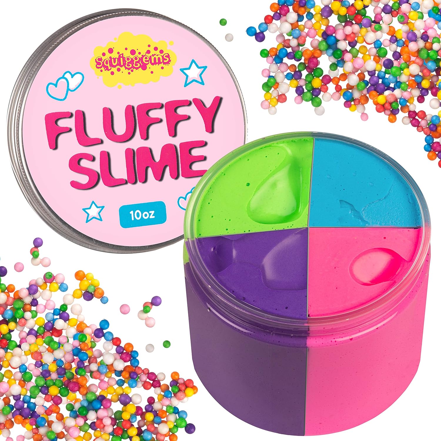 squiggems 10oz jumbo fluffy slime with free unicorn squishy great gift for girls set of 4