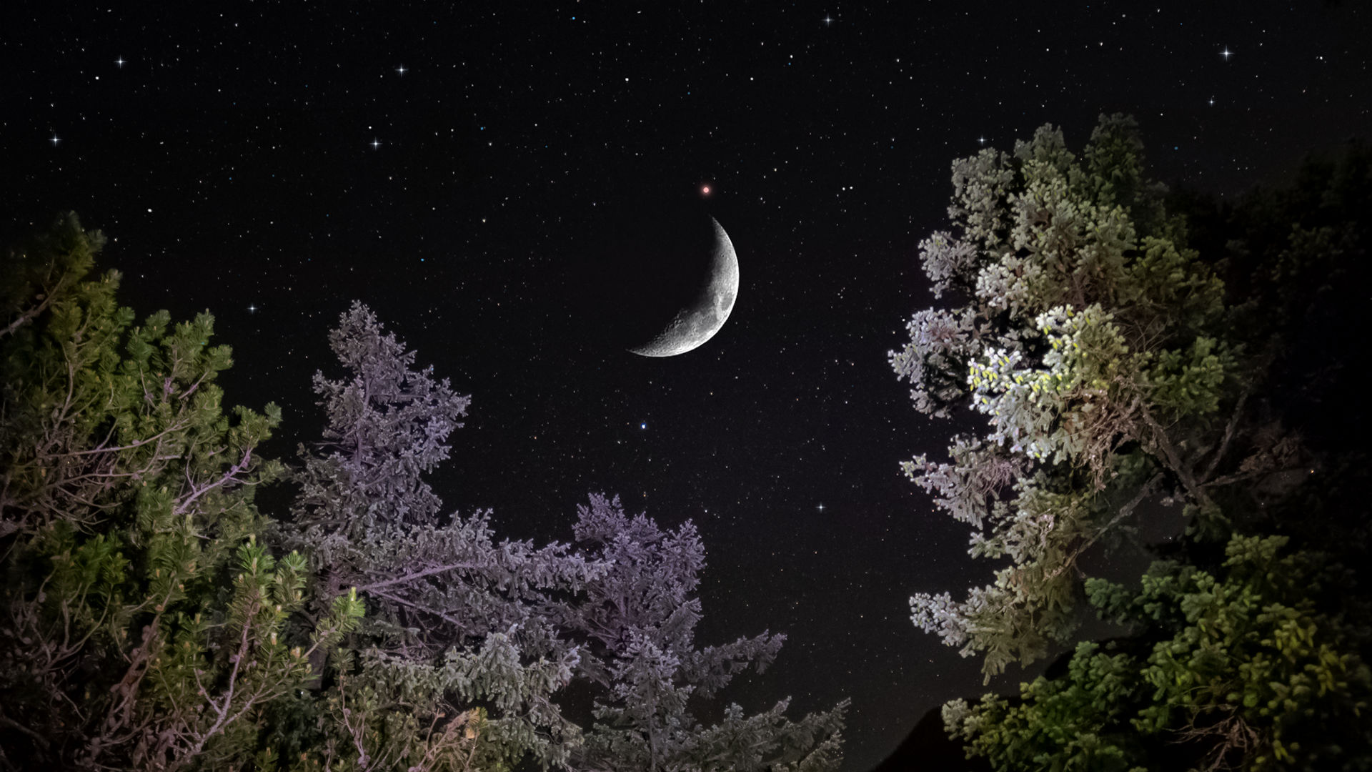 wenn man jetzt zum mond schaut ist unter ihm ein kleiner roter stern venus oder mars astronomie sterne weltraum