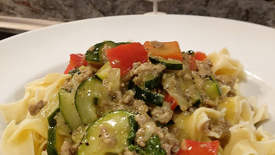 nudel hackfleisch pfanne mit zucchini lydiasfoodblog